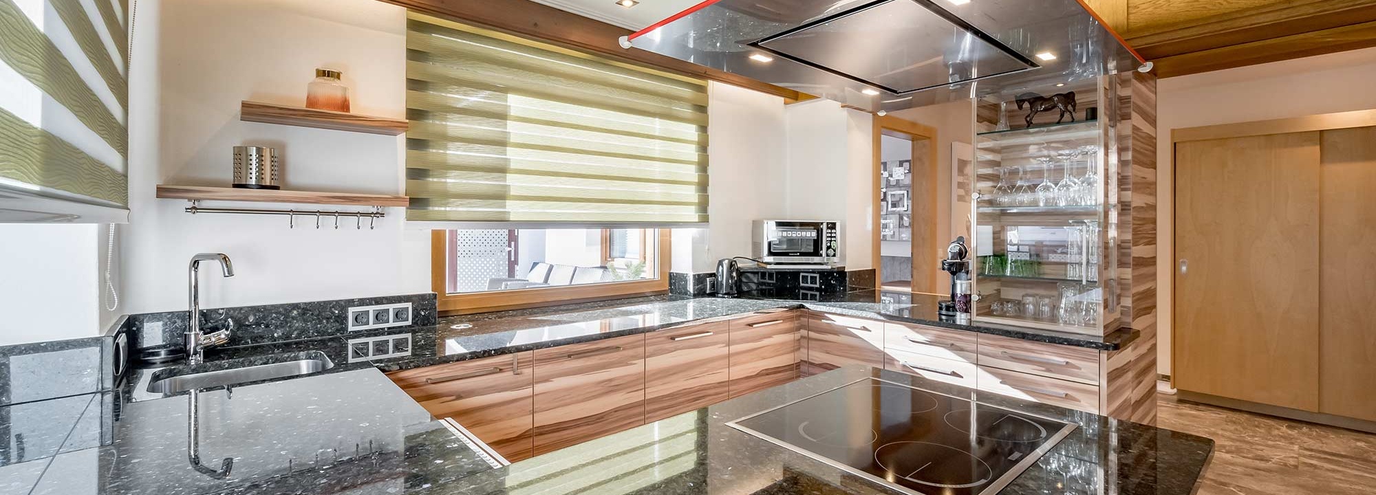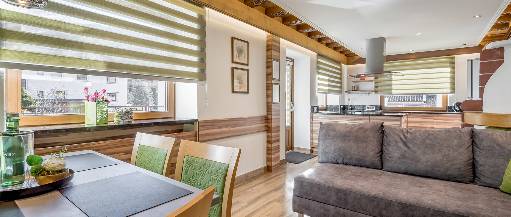 Sehr großzügige Wohnküche mit Ausziehcouch (Schlafmöglichkeit für 1 Person), vollausgestatteter Küchenzeile und Essecke