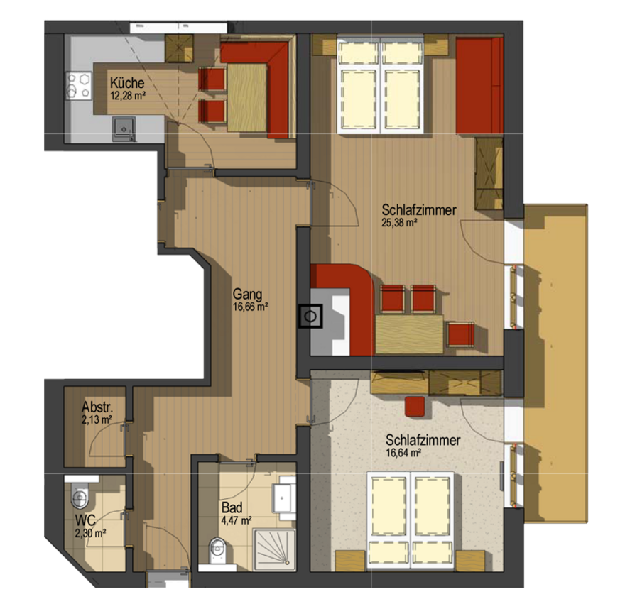 Das Appartement liegt im 2. Obergeschoss und ist mit dem Lift erreichbar. Zudem bietet Ihnen dieses Apart einen möblierten Balkon. Wir bitten um Verständnis das Haustiere in diesem Appartment nicht gestattet sind
