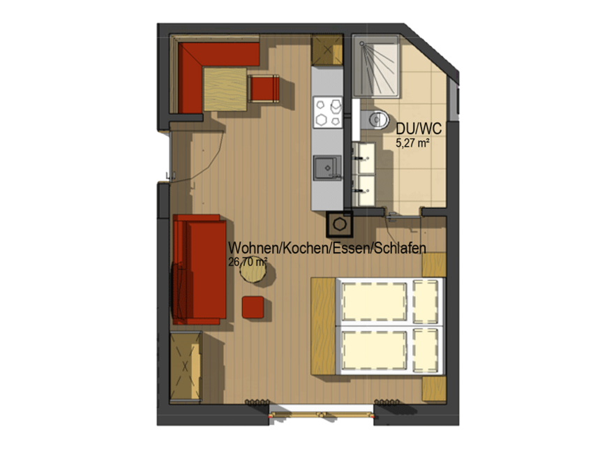 Das Appartement liegt ostseitig im 2. Obergeschoss, verfügt über keinen Balkon und ist mit dem Lift erreichbar. Wir bitten um Verständnis das Haustiere in diesem Appartment nicht gestattet sind.